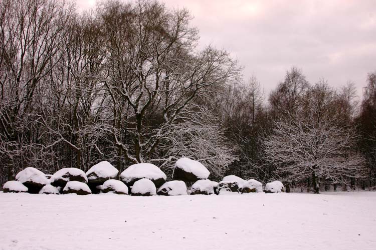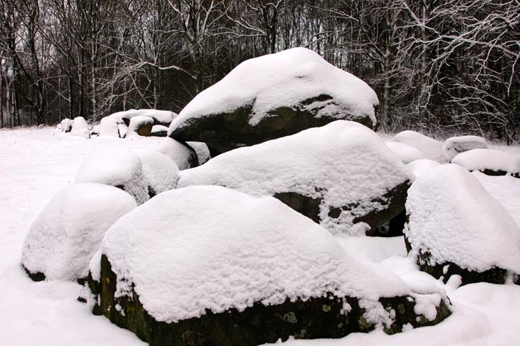 Hunebedden (megalithic tombs) of Drouwen in the snow