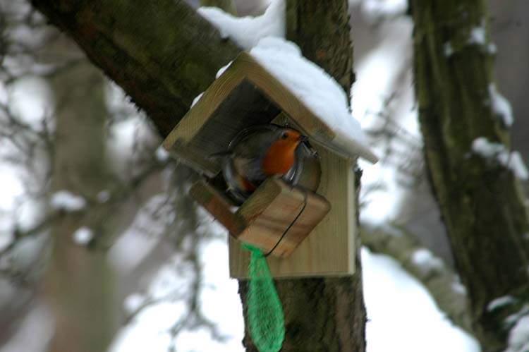 A robin, my favorite bird, loves our peanut butter