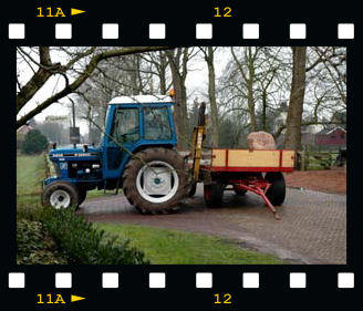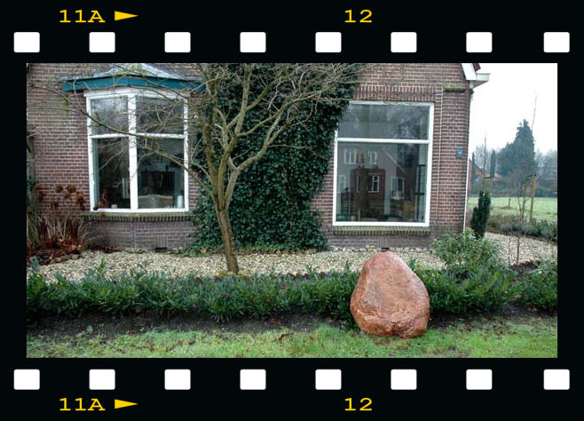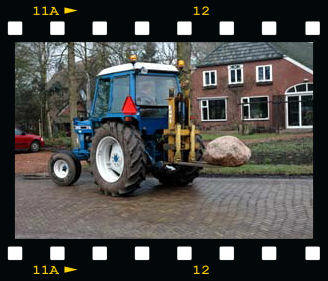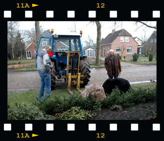 In the soil of Drenthe there are lots of boulders which were transported from Scandinavia to the northern part of The Netherlands during the glacial period. In almost every garden such a 'big boy' is present. We thought we couldn't stay behind and bought such an impressive boulder. It was a big operation to get it in place. Hereunder a photo impression of this 'laying the first stone'.