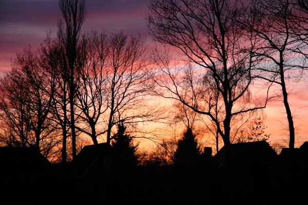 Zonsondergang vanuit ons raam gezien