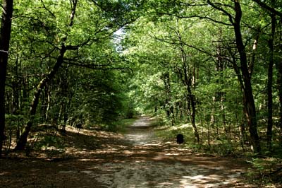 Het bos achter ons huis waar wij dagelijks met de honden wandelen