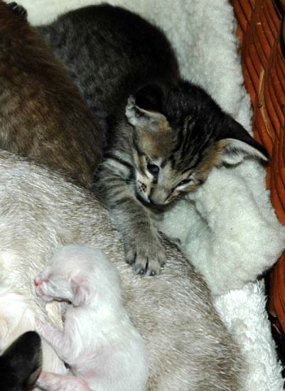 The boys taking care of Ourania's newborn baby