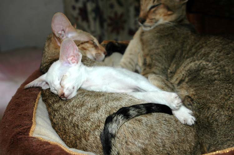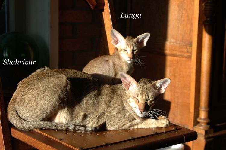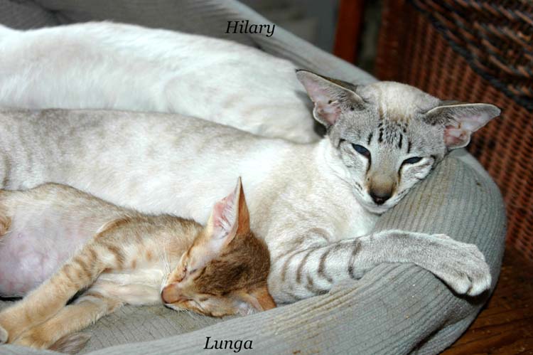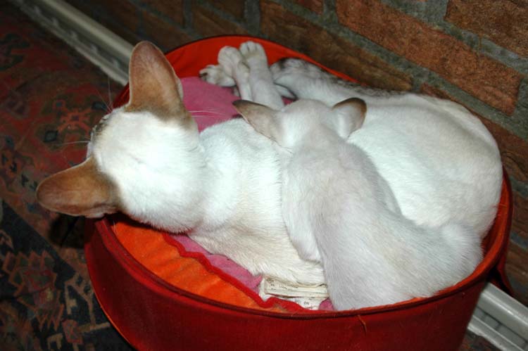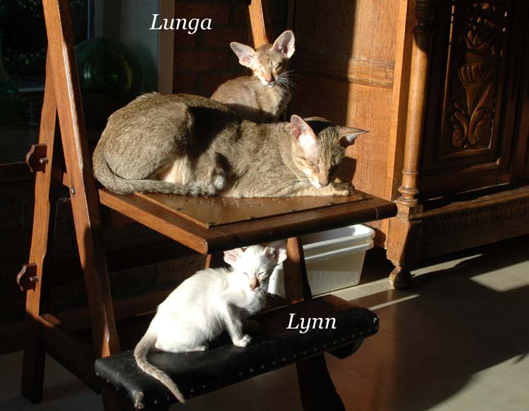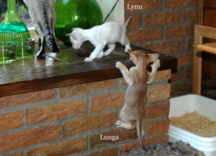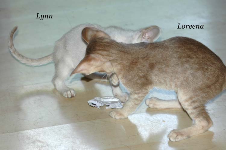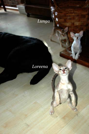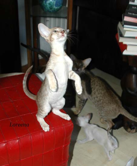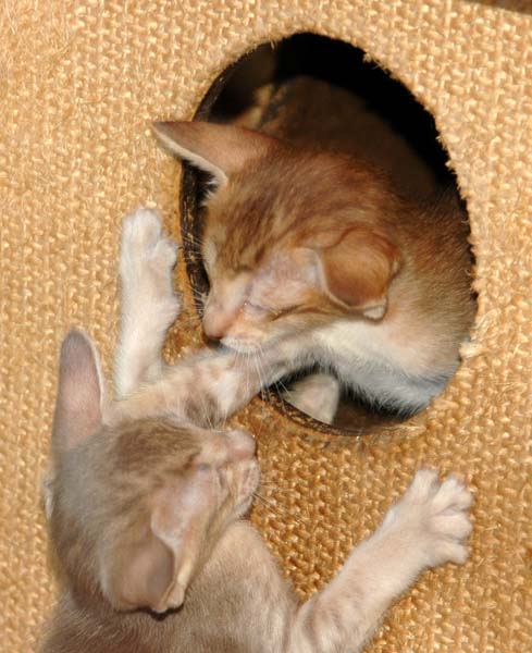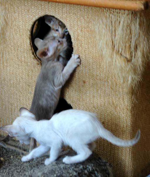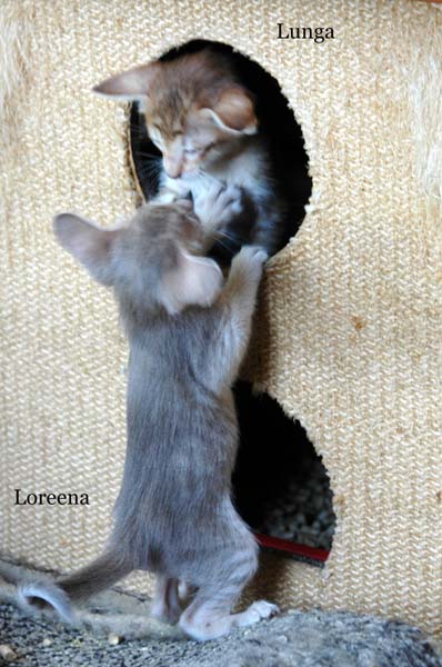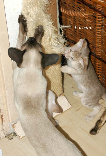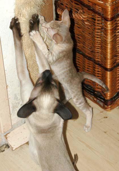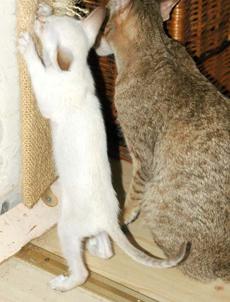 Pinocchio teaching Loreena how to use the scratching pole .....