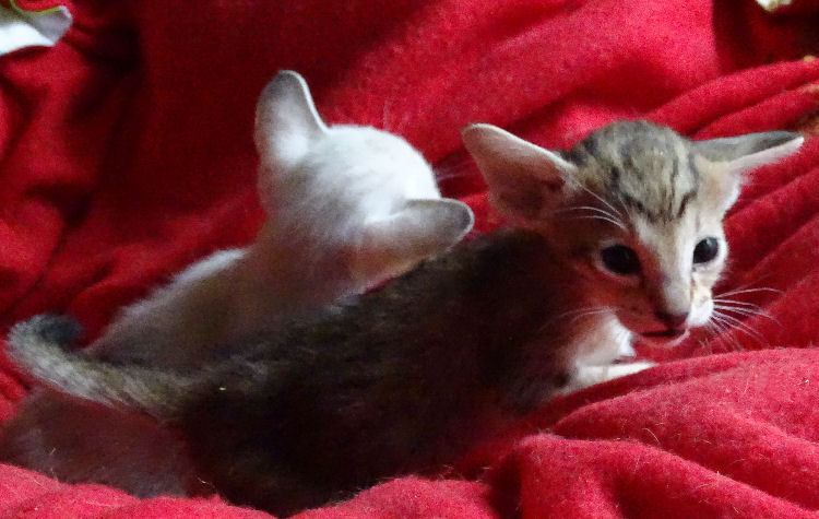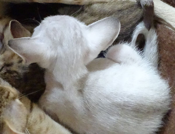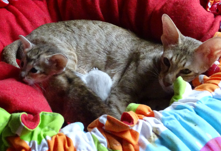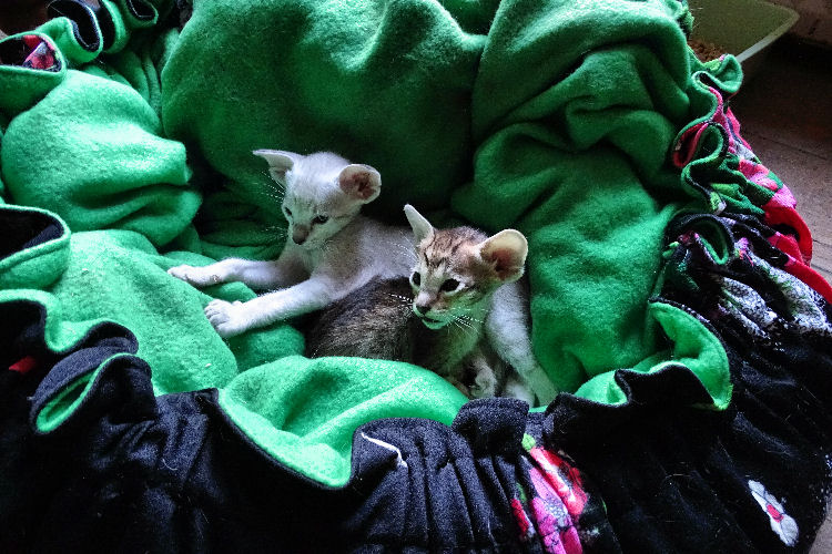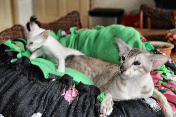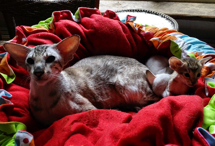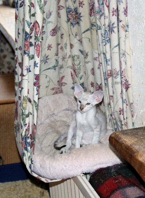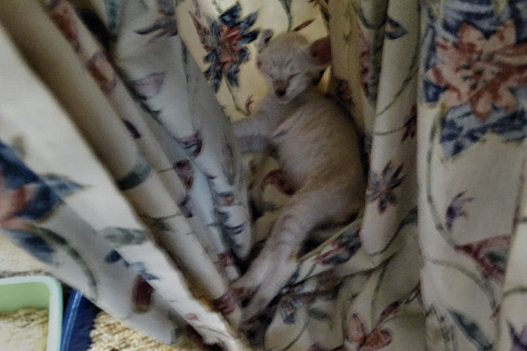 Ziggy heeft zijn eigen tent gemaakt in het gordijn!