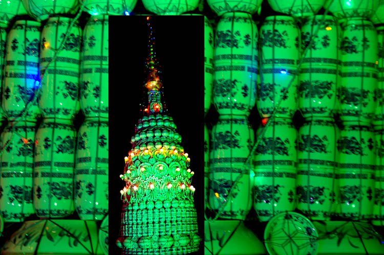 Toren, opgebouwd uit honderden kleine potjes / Tower, built up with hundreds of little pots