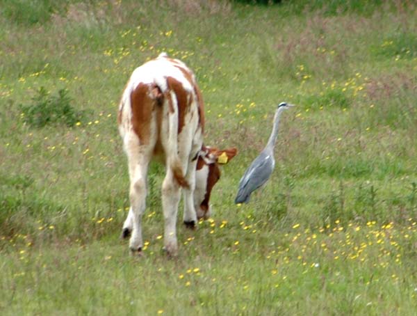 een kalf dat vriendjes is met een reiger .....