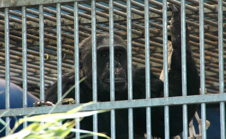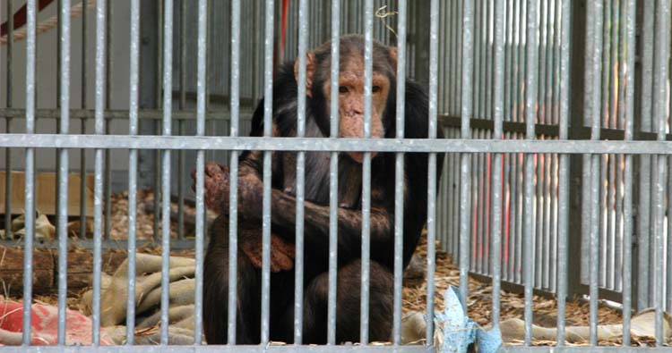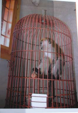 in het geval van de aap rechts op de foto. Dit arme dier had 20 jaar in dit