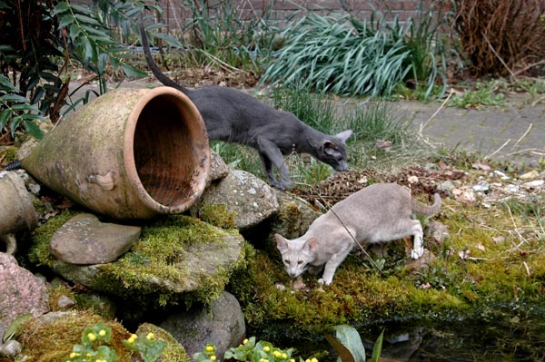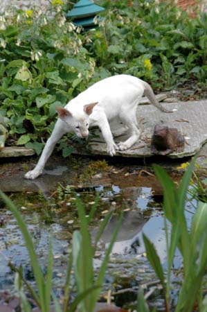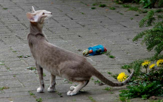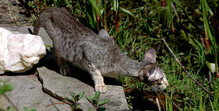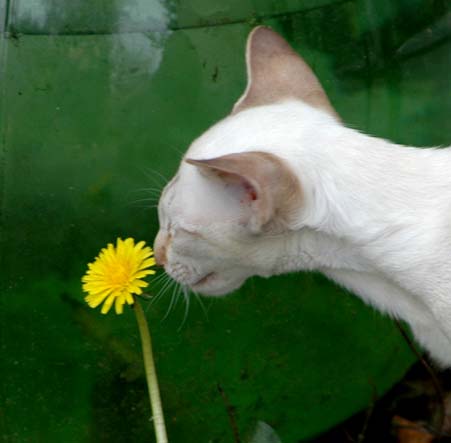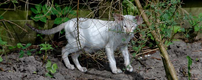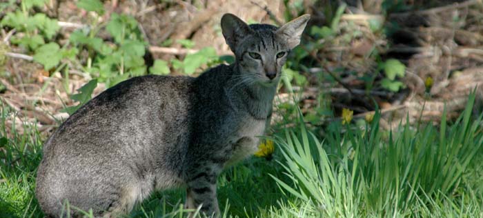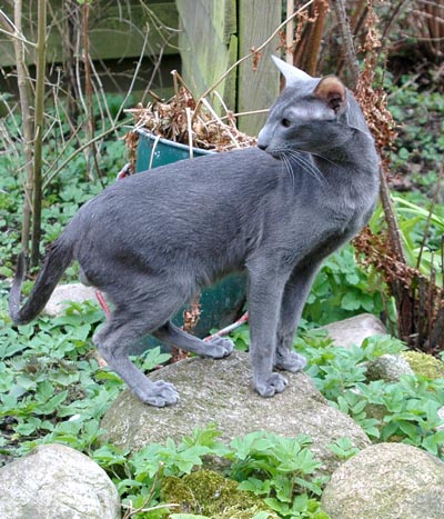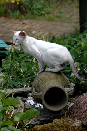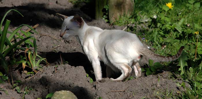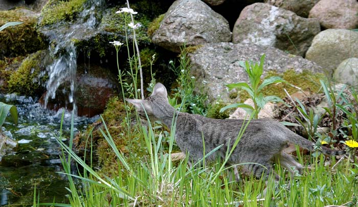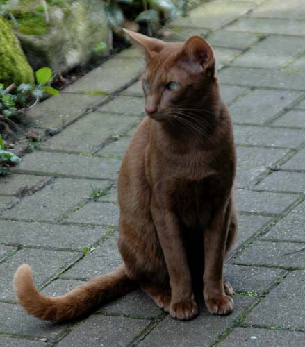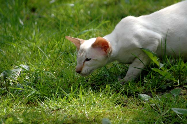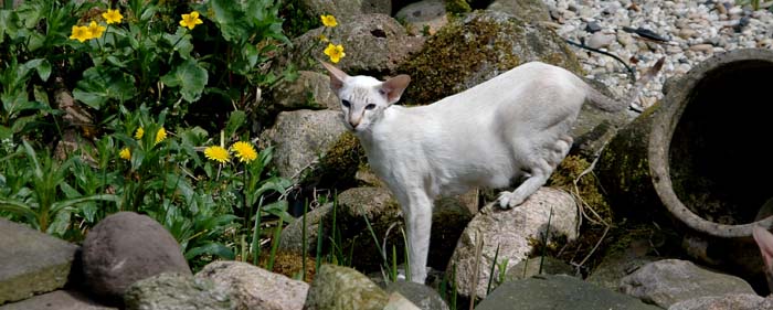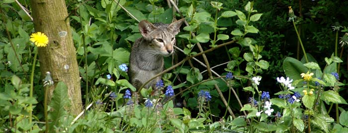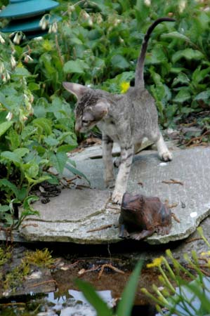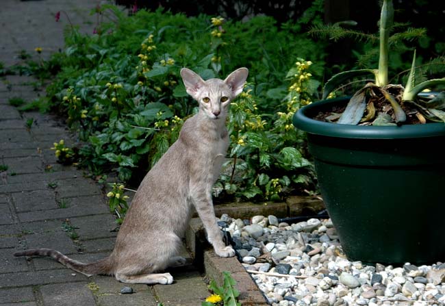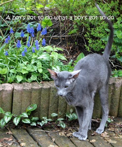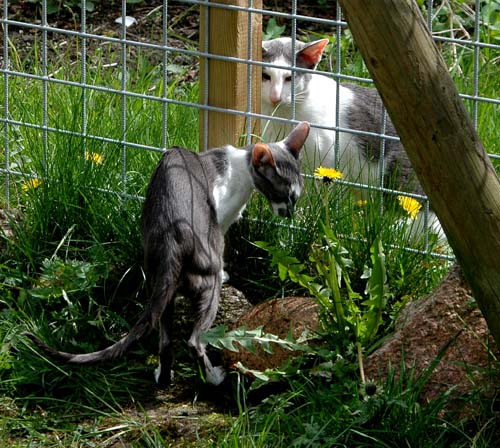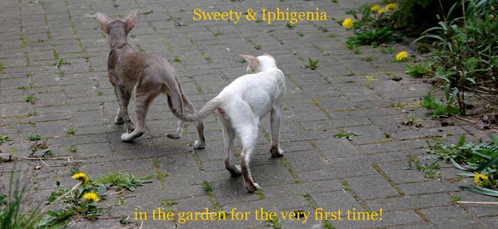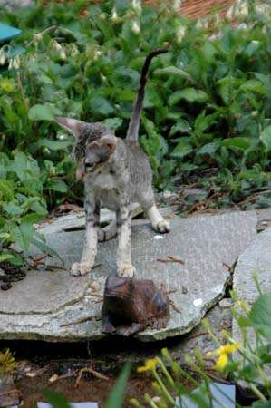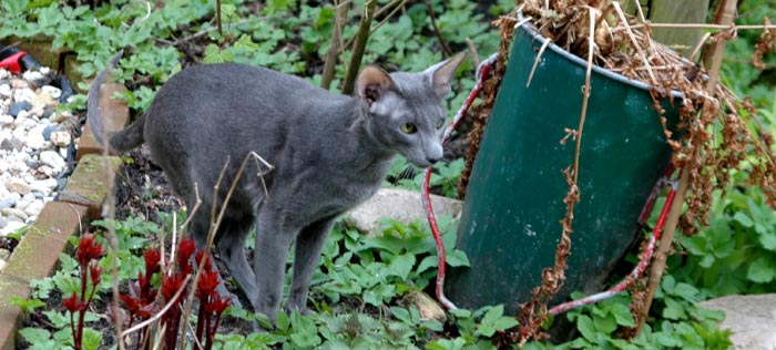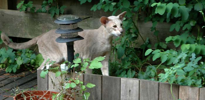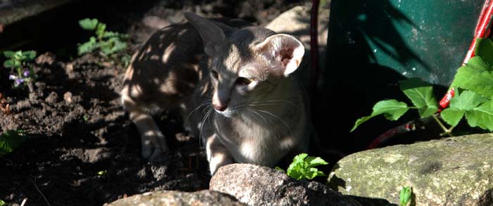 Heathcliff in the garden for the first time