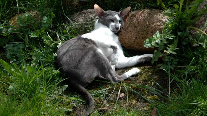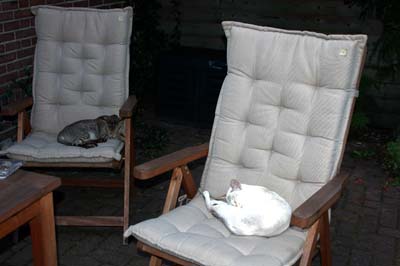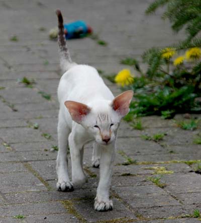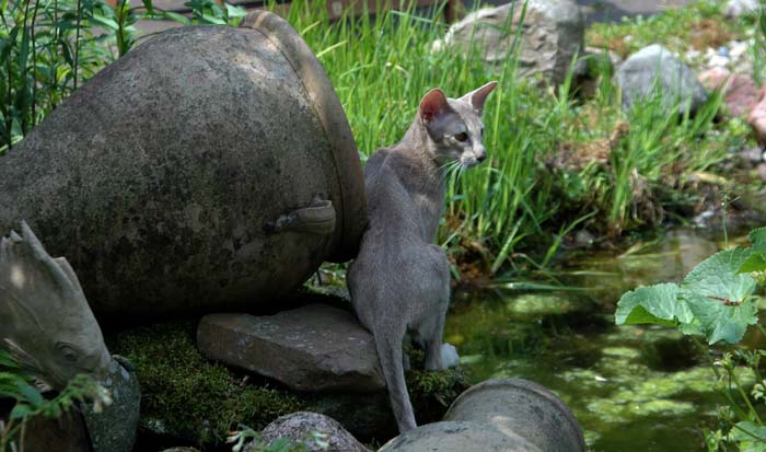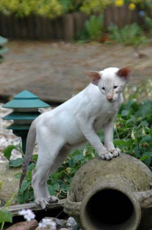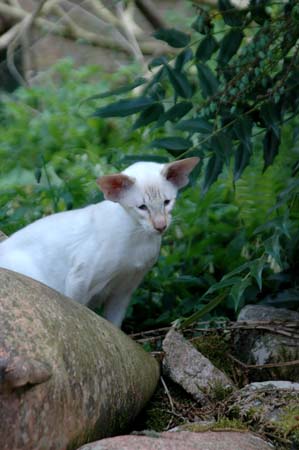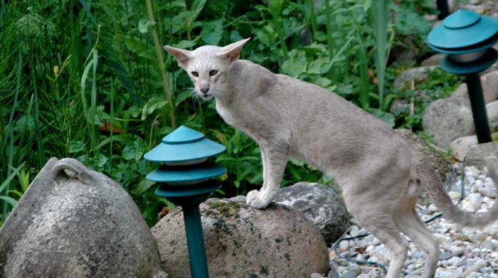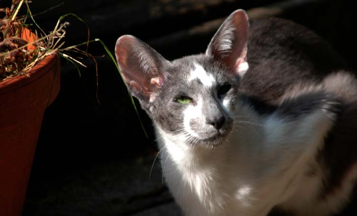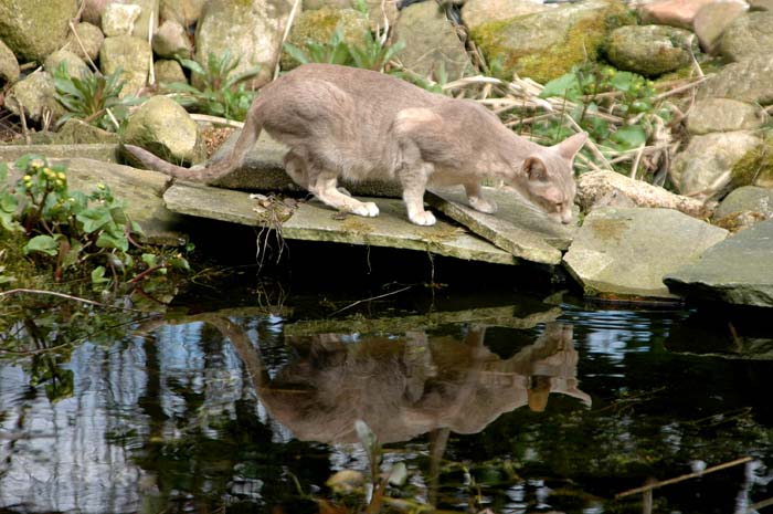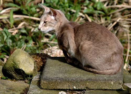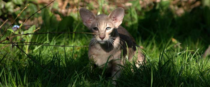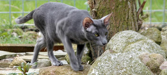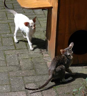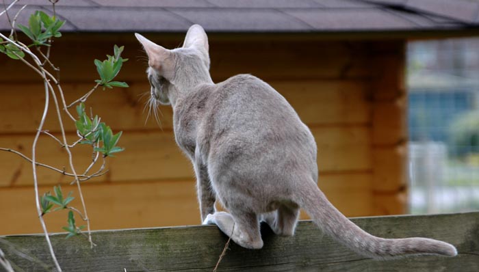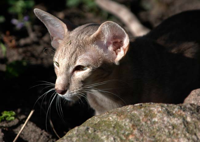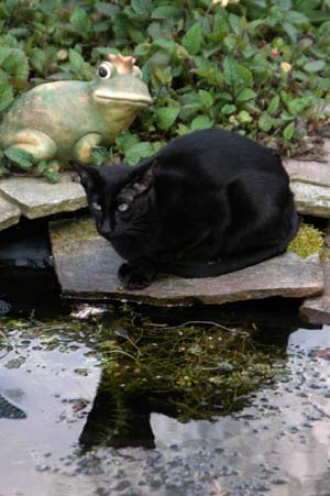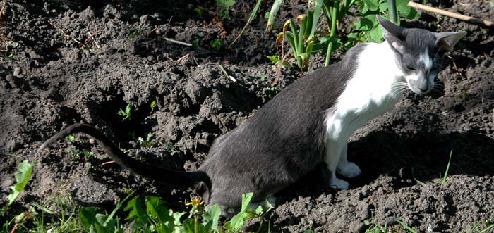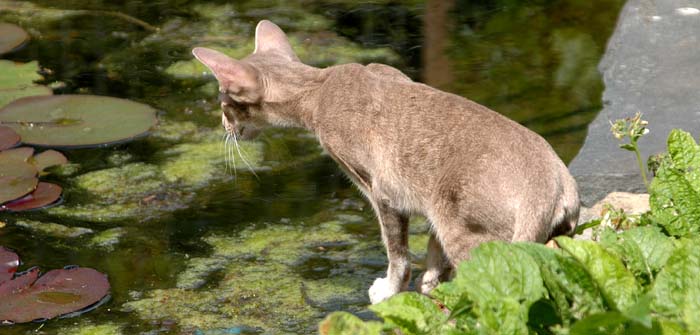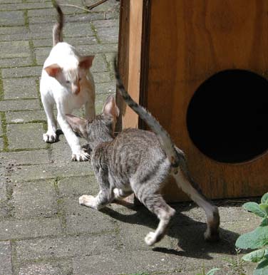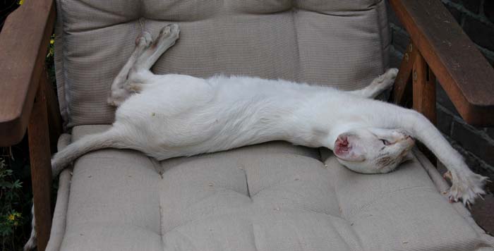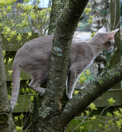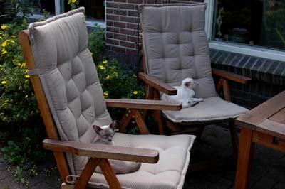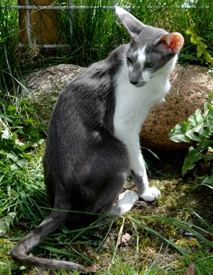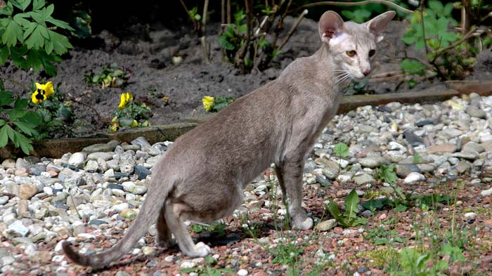 Heathcliff in the garden for the first time