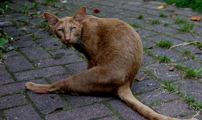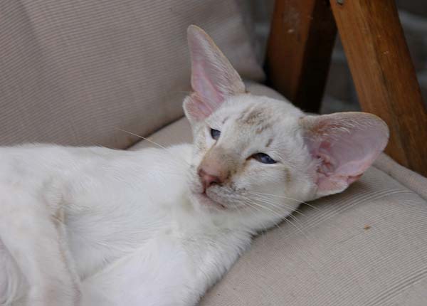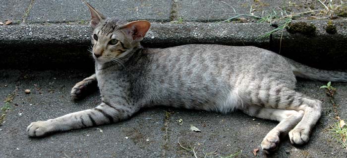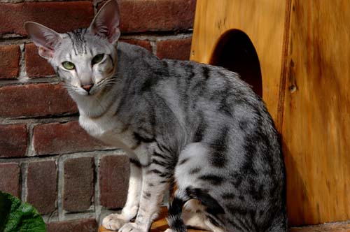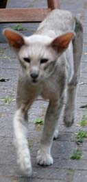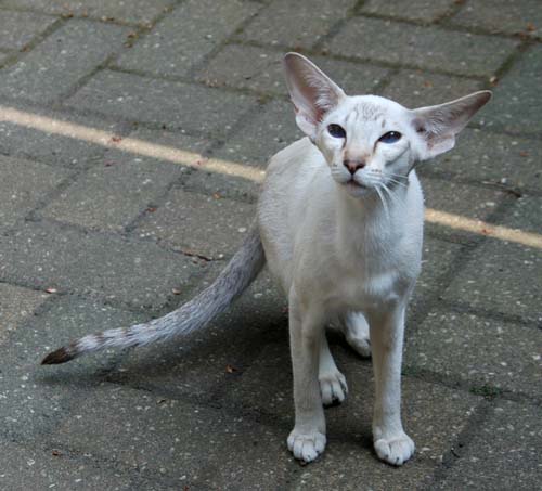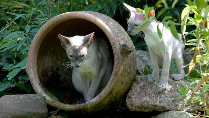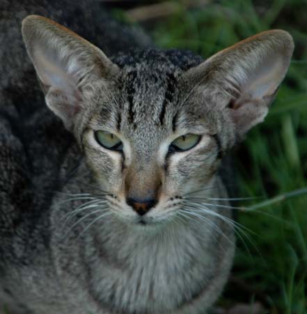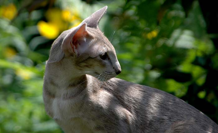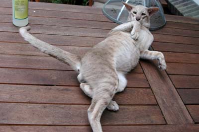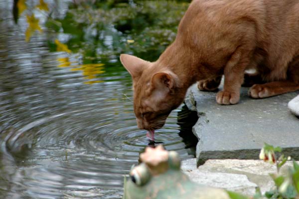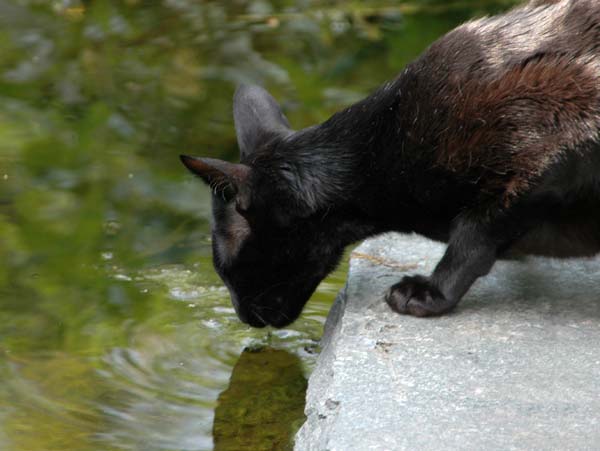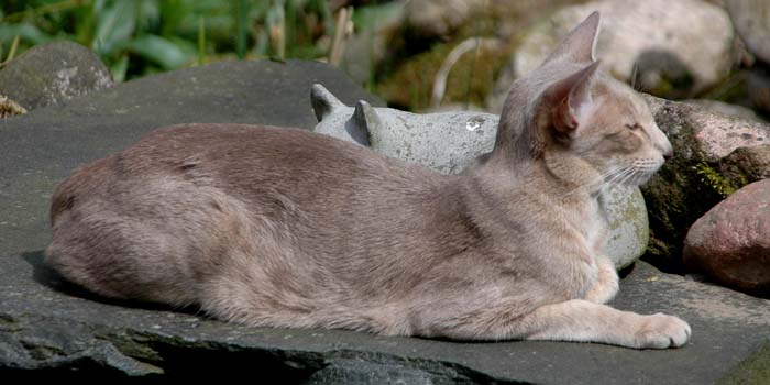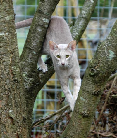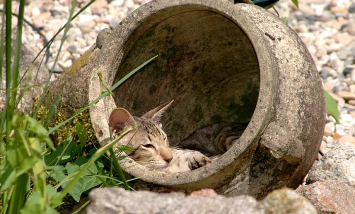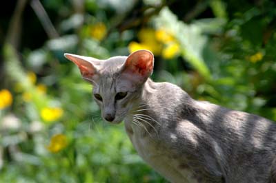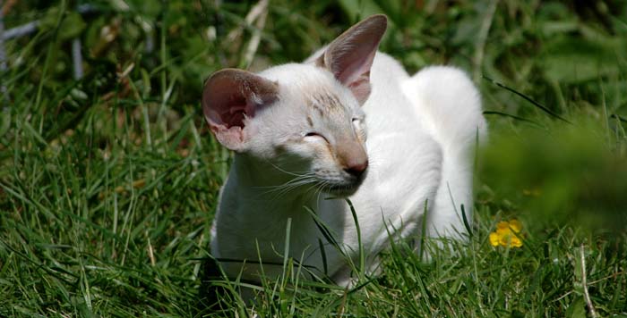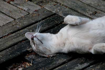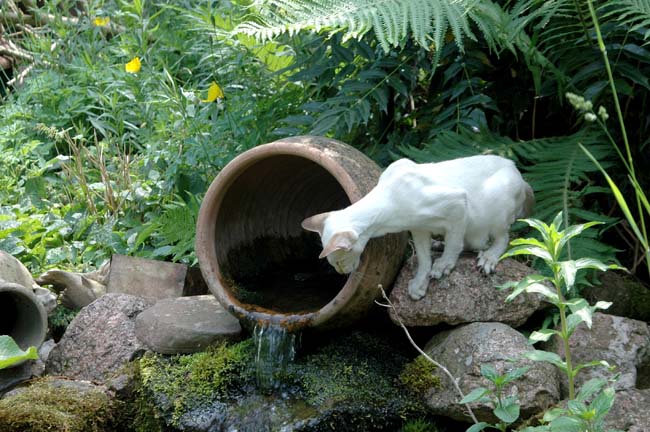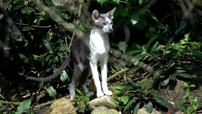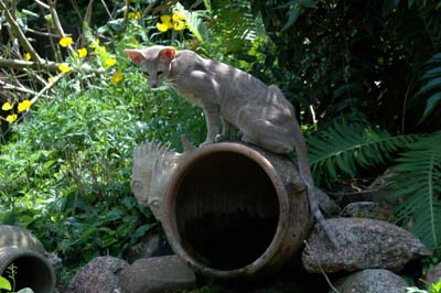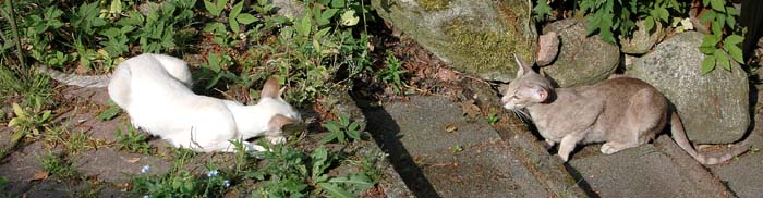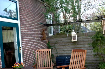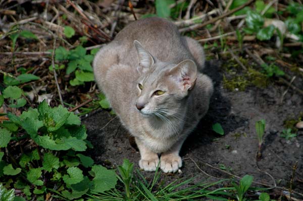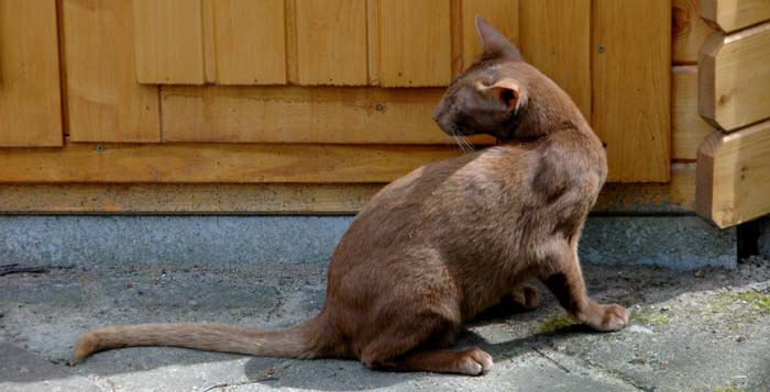 Heathcliff in the garden for the first time