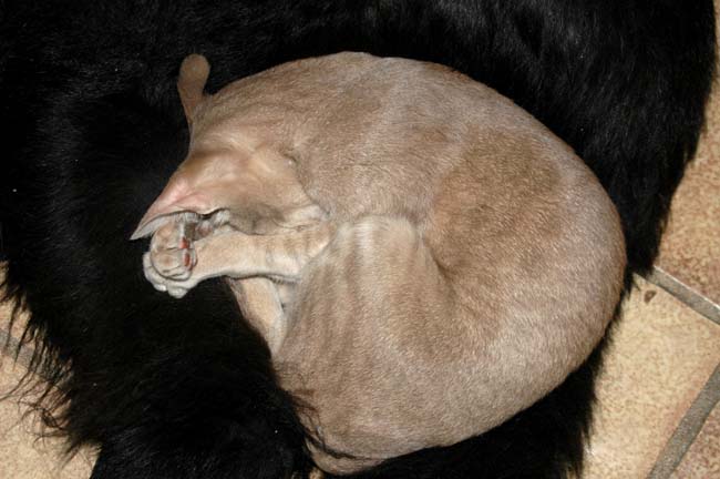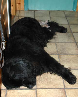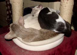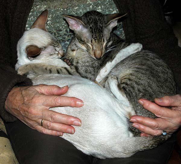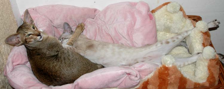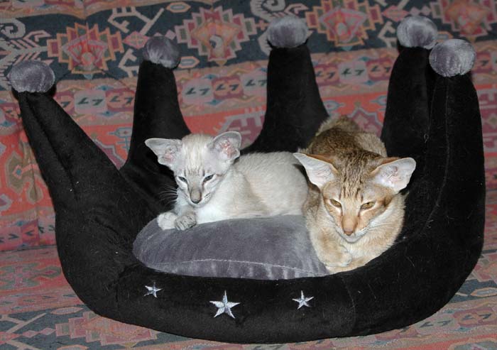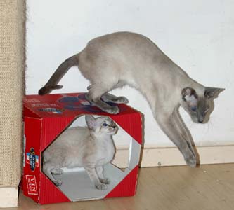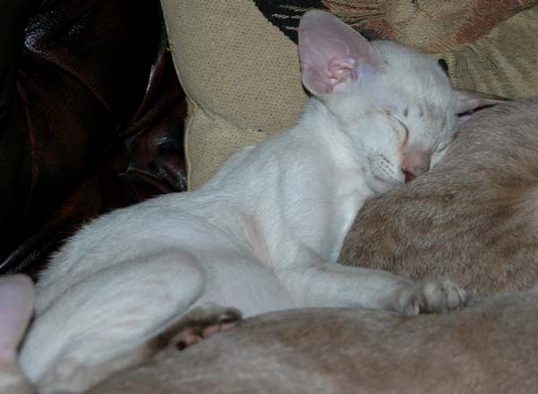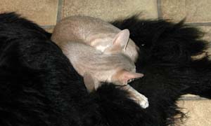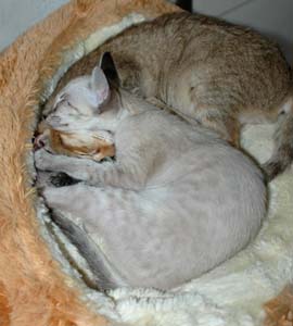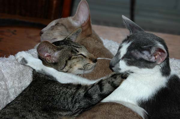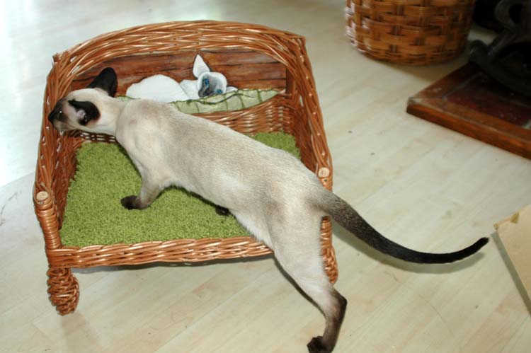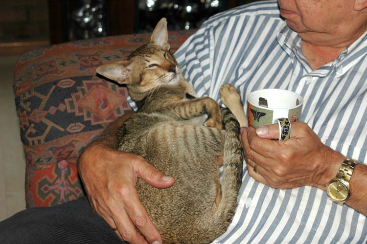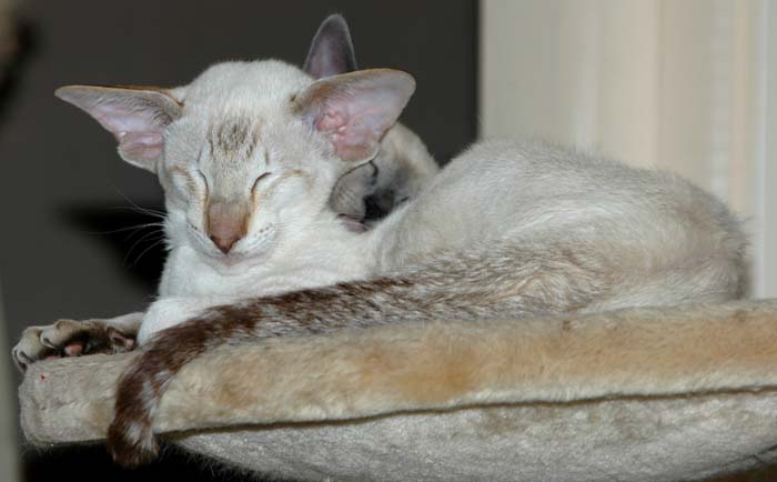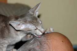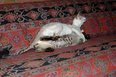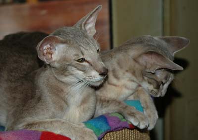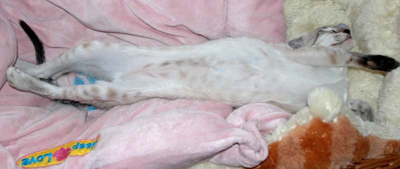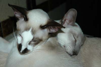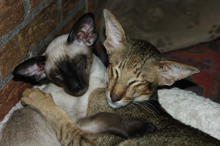 Lily, expecting her litter any minute, makes sure that she at least has one kitten. Sweety found himself a new mommy :-)