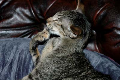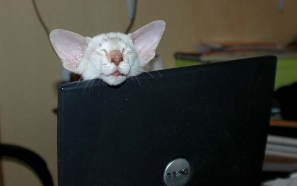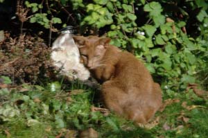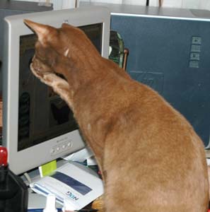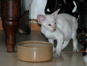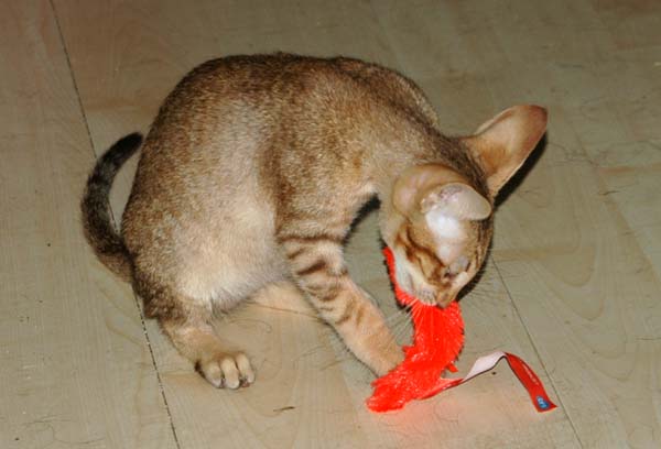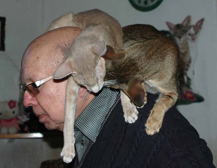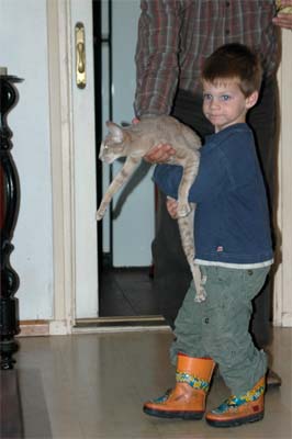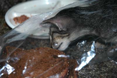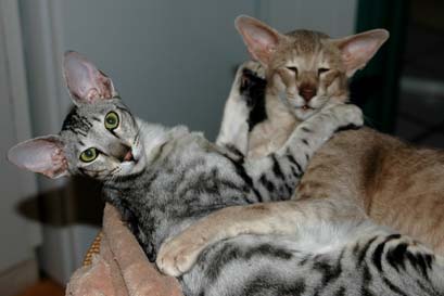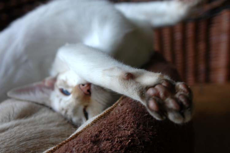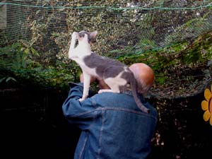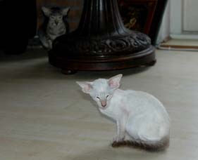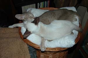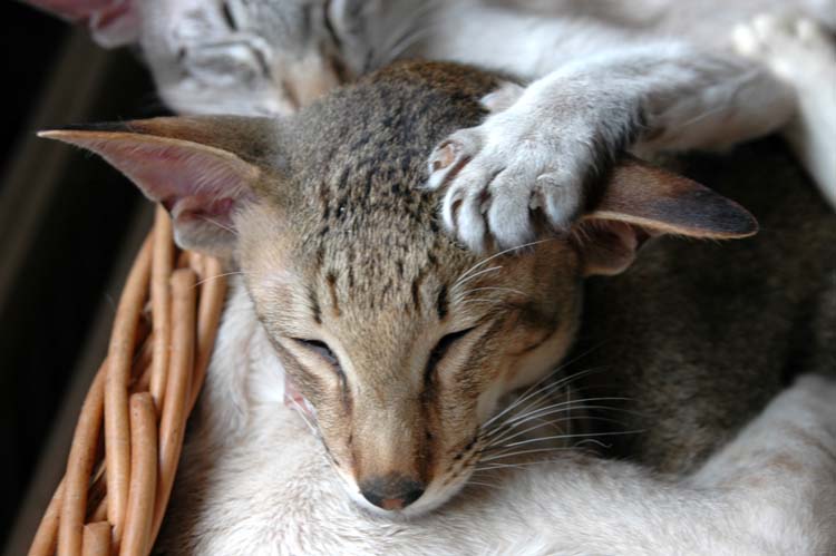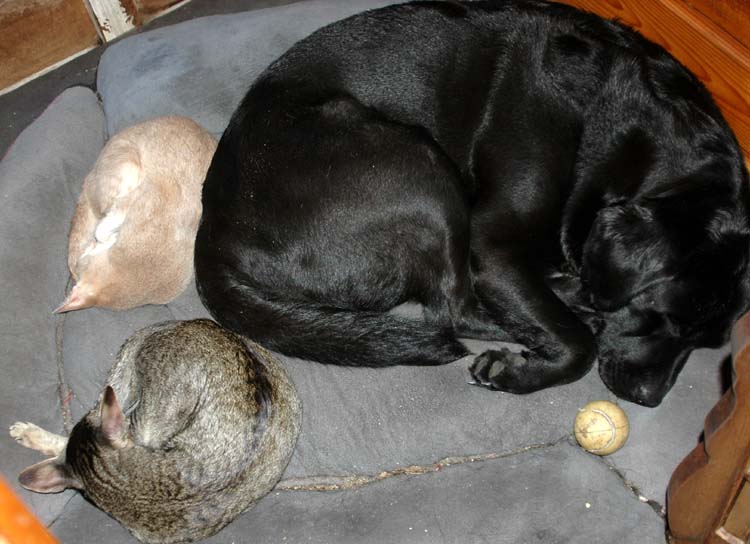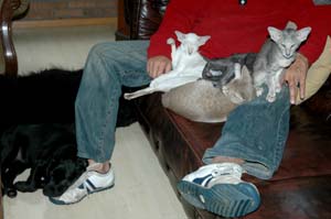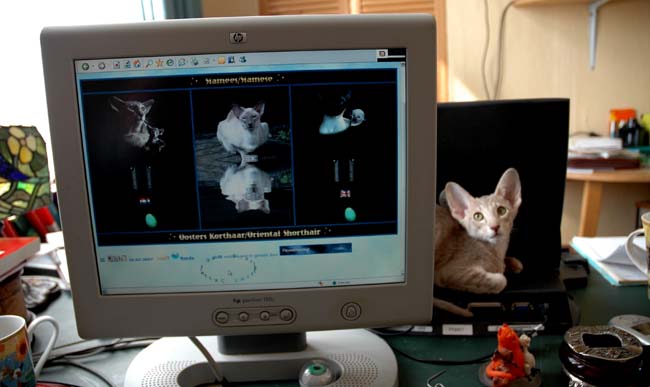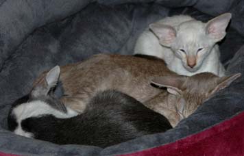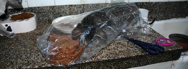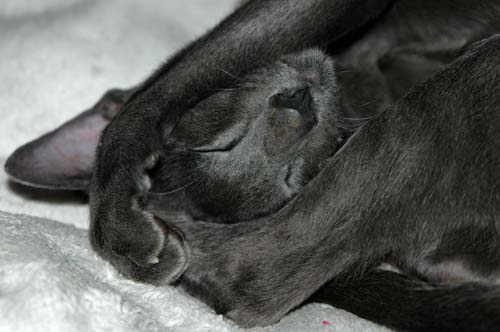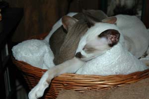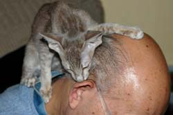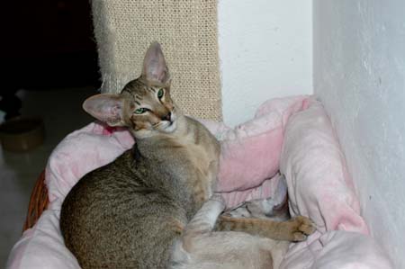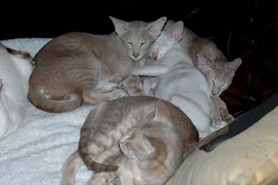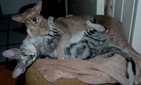 Lily, expecting her litter any minute, makes sure that she at least has one kitten. Sweety found himself a new mommy :-)