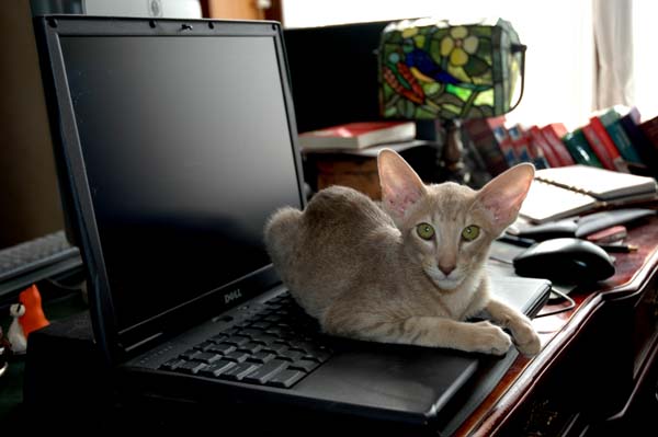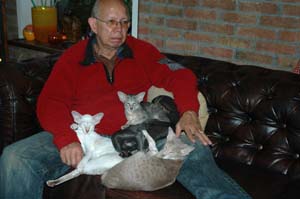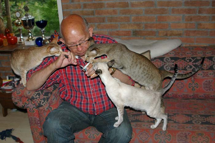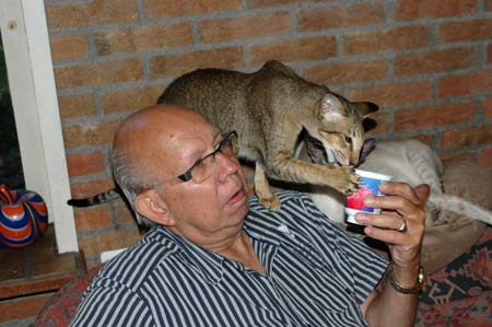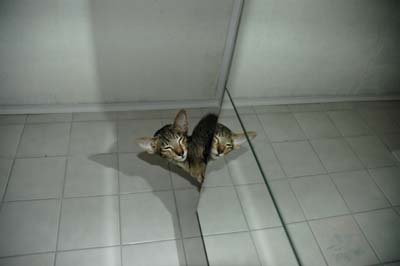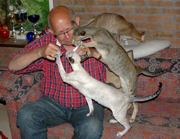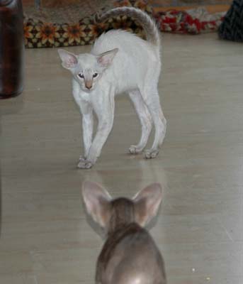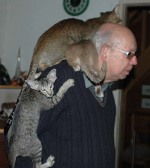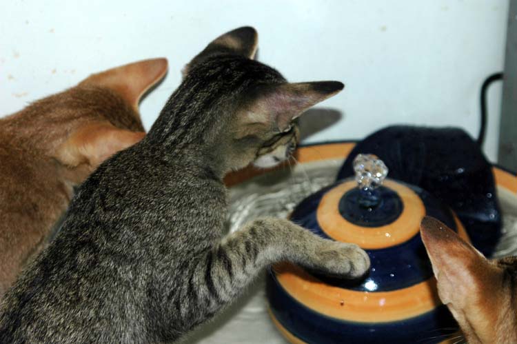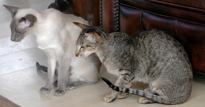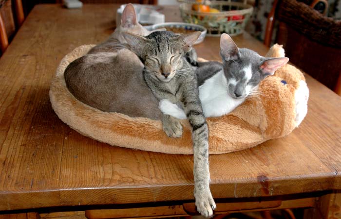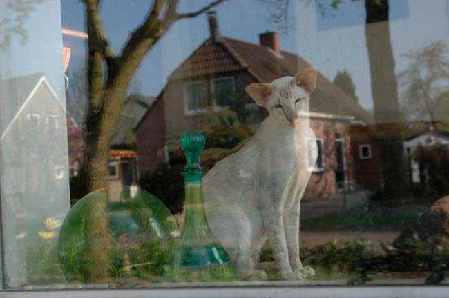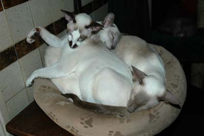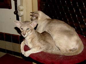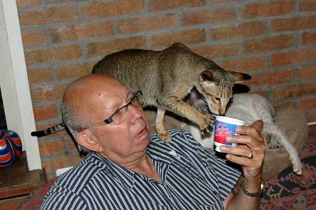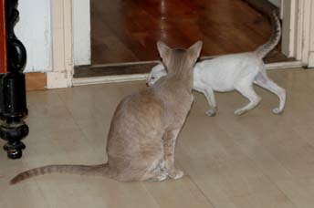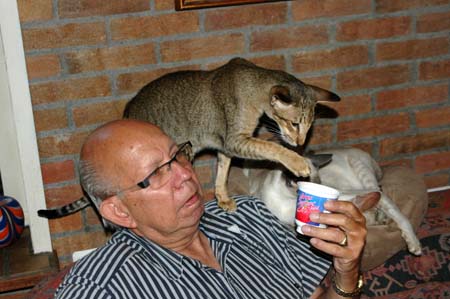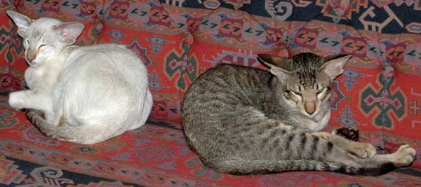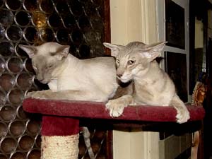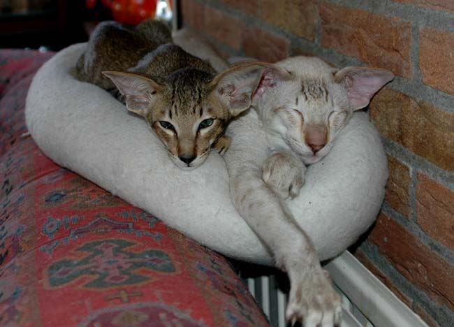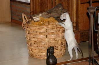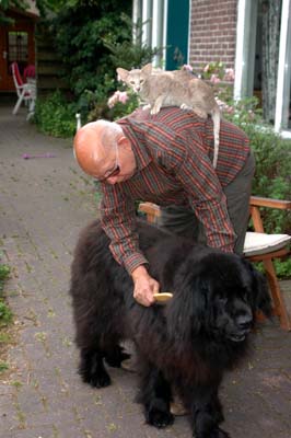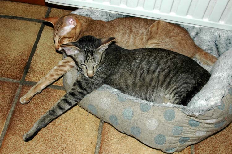 Every night the same ritual: when they notice that we make preparations to go to bed, Sweety and Heathcliff make their way to the bathroom and patiently wait together till we are ready to go upstairs.