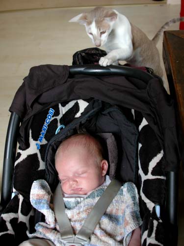 en Dalai nam bezit van zijn Maxi Cosy - - and Dalai took possession of his Maxi Cosy
