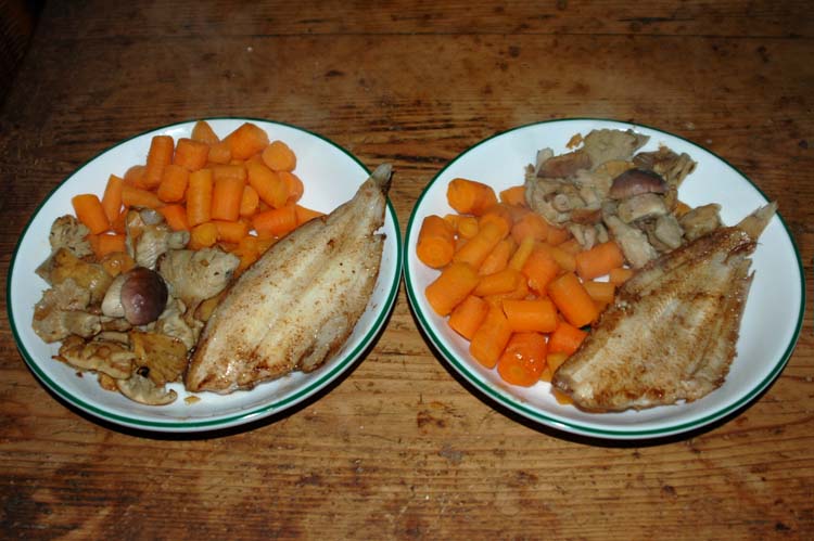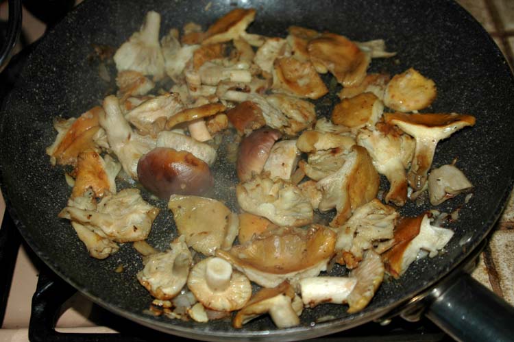 Baking in a frying-pan together with a shallot and some garlic ....