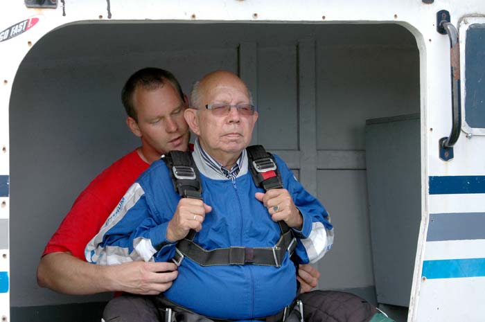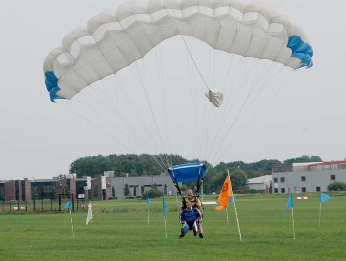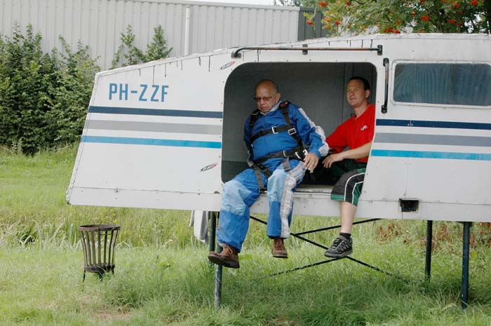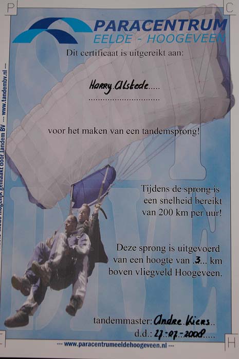 it says that during jumping a velocity of 200 km/hour was reached and the jump was performed from a height of 3 km over the Hoogeveen Airport