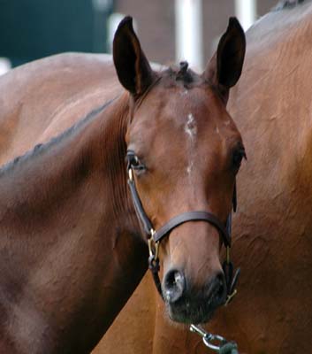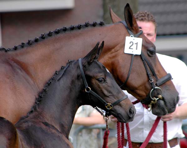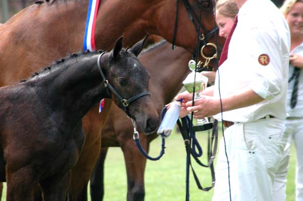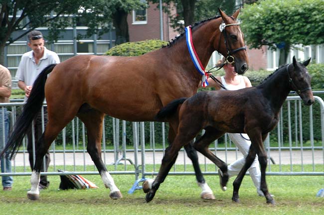 Dit koffievosje (merrie) werd Kampioen dressuur gefokte veulens ~~ This bay mare became Champion of the foals bred for dressage