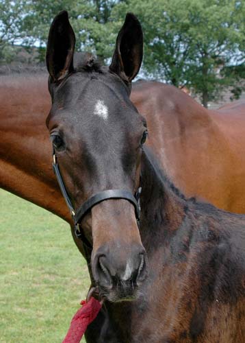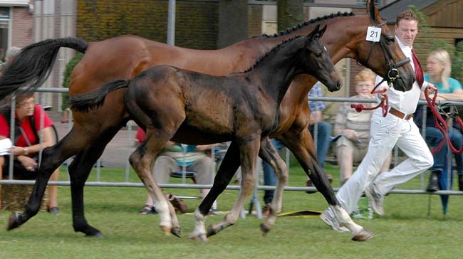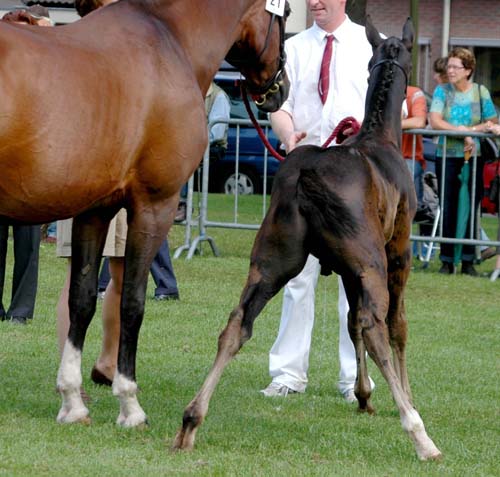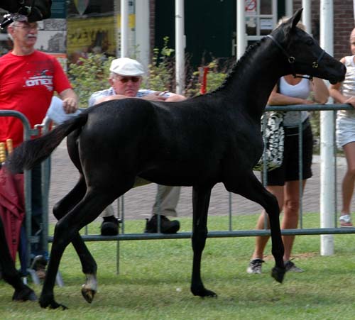 Dit zwarte merrieveulen (1e premie - springen gefokt) deed me denken aan het bekende Franse springpaard Jappeloup de Luze ~~ This black mare-foal (1st premium, bred for jumping) reminded me of the well-known French jumper Jappeloup de Luze