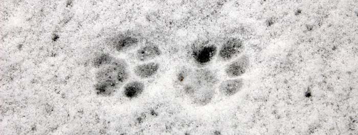 kattenpootjes op het ijs van onze vijver ~~ paw prints of a cat (on the ice of our pond)