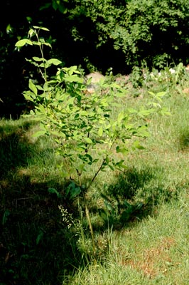 | Toen wij naar Drenthe verhuisden, kon ik de mooie Goudenregen die mij opa decennia geleden geplant had, niet meenemen. Gelukkig groeide er een stek die wij uitgroeven en plantten in onze nieuwe tuin. En ja! hij doet het en groeit gestaag! |